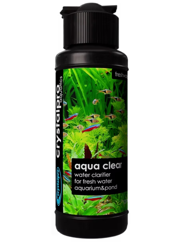 Crystalpro Aqua Clear, su berraklaştırıcı tatlı su akvaryumları ve balık göletlerindeki bulanıklığı giderir. Suyu kristal berraklığına kavuşturur. Yosunlaşmayı ve suyun kötü kokmasını engeller. İçeriğindeki aktif inorganik moleküller bulanıklığa neden olan suda yüzen küçük organik maddeleri bağlar. Daha sonra bunlar tabana çöker ya da filtre süngerinde toplanır. Böylece sudan uzaklaştırılır. 125 ml ürün 2.500 litre için yeterlidir.