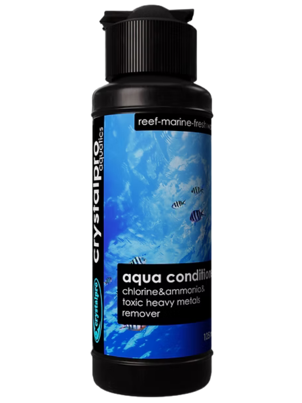 Crystalpro Aqua Conditioner; sudaki amonyak, klor ve zehirleyici ağır metalleri bağlayıp etkisiz kılar. Akvaryum canlıları için gereken sağlıklı suyu temin eder. İçeriğindeki ilave mineraller balıklara daha sağlıklı bir ortam sağlar. Suyun ph'ını değiştirmez. Etkisi çok hızlıdır. İster su değişimi için hazırlanan değişim suyunda, ister direkt olarak akvaryuma dökerek kullanılabilir. Tüm tatlı su ve tuzlu su akvaryumlarında kullanıma uygundur. Akvaryumların ilk kurulumlarında biyolojik döngünün daha çabuk oluşmasını sağlar. 125 ml ürün 2500 litre kullanım için yeterlidir.