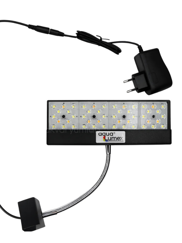 Aqua Cube Nano akvaryum ışığı, şık siyah tasarımı ve kolay temizlenebilir yapısıyla tatlı su akvaryumları için geliştirilen bir LED aydınlatma sistemidir. Orijinal OSRAM çipleri ve özel 60° lens camı sayesinde bitkiler için ideal ışık verirken buharın LED’lere zarar vermesi engellenir. Spiralli yapısı sayesinde istenilen şekle getirilebilir ve 12 mm cama cam akvaryumlara vidalı ayakla sabitlenebilir. 9 adet 6500K beyaz ve 3 adet full spektrum LED’den oluşan 6W, 600 lümen ışık sağlar.