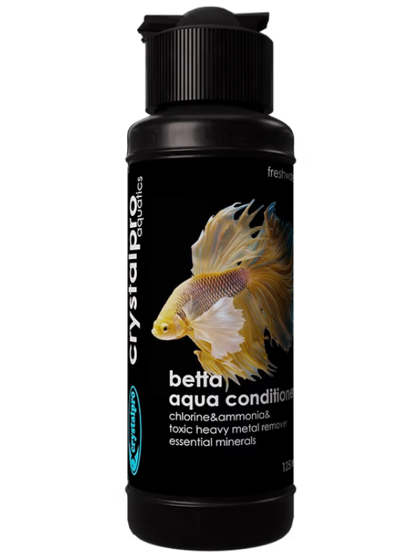 Crystalpro Betta Aqua Conditioner, Beta akvaryumları için klor, kloramin, amonyak ve ağır metal giderci sıvı katkı. Musluk suyundaki klor, kloramin, amonyak ve zehirleyici ağır metalleri bağlayıp etkisiz kılar. Zararlı parazitleri önlemeye yardım eder. Beta balıkları için gereken sağlıklı suyu temin eder. İçeriğindeki ilave mineraller betaların daha sağlıklı ve canlı renklere kavuşmasına yardımcı olur.