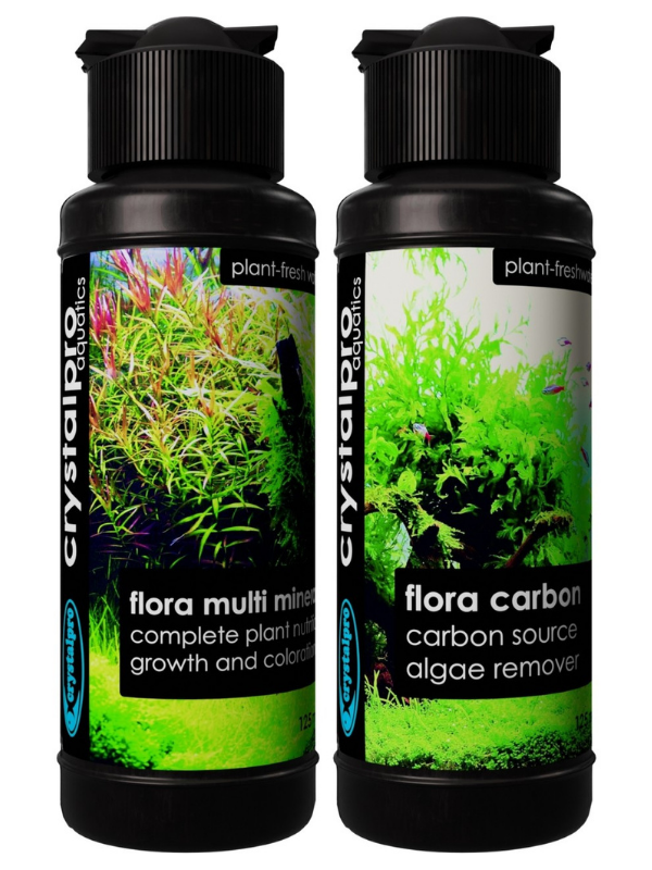Crystalpro Flora Multi Minerals 125 ml, low-tech bitkili akvaryumlarda bitkilerin ihtiyaç duyduğu makro ve mikro mineralleri dengeli şekilde sağlayarak sağlıklı gelişimi ve canlı renklenmeyi destekler. Flora Carbon 125 ml ise CO₂ sistemi gerektirmeden bitkiler için kullanılabilir karbon kaynağı sunar ve yosun oluşumunun azaltılmasına yardımcı olur.