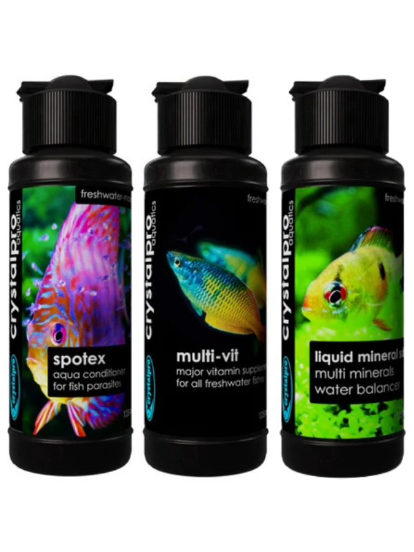Crystalpro Parazit Tedavi Seti, akvaryum balıklarında görülen parazit problemlerine karşı tedavi ve toparlanma sürecini birlikte desteklemek için hazırlanmıştır. Set; Spotex 125 ml parazit ilacı, Multi-Vit 125 ml vitamin katkısı ve Liquid Mineral Salt 125 ml mineral desteğinden oluşur.
