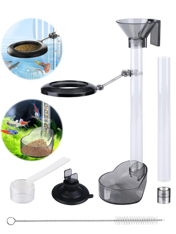 Akvaryum yemleme tüpü, yemleri belirli bir noktadan akvaryuma ileterek hem balıkların beslenmesini kolaylaştırır hem de akvaryum bakımını daha düzenli hale getirir.